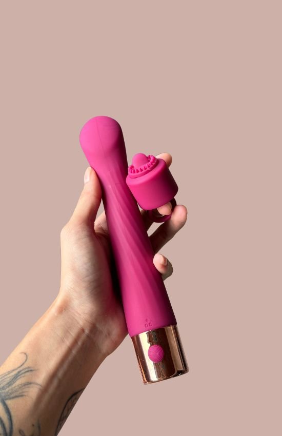 Dois brinquedos, infinitas possibilidades de prazer. Este kit exclusivo combina um vibrador de ponto G com função de aquecimento e um anel estimulador com 20 modos de vibração – a união perfeita para explorar estímulos intensos e sensações profundas a dois ou a sós.